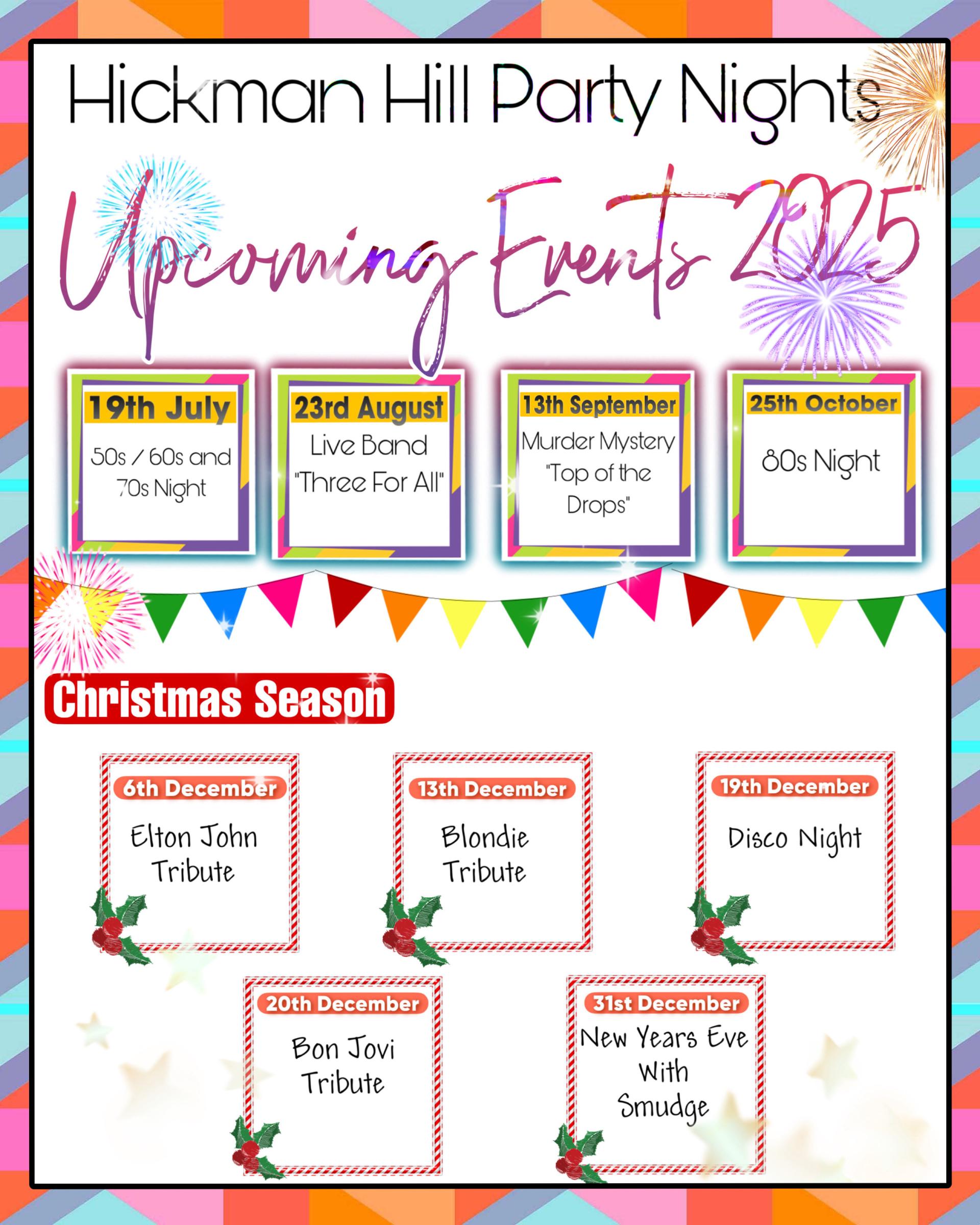 At the Hickman Hill we have special events and cabaret nights throughout the year !